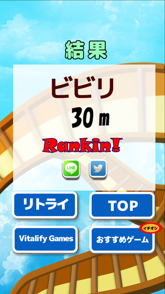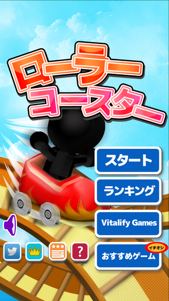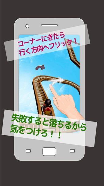 「スタート」ボタンでゲームを始めると、黒い人影を乗せたジェットコースターが動き出します。曲がり角をフリックで曲がり、レール上を進みましょう。タイミングよく曲がり角を曲がらないと脱線してゲームオーバーになります。